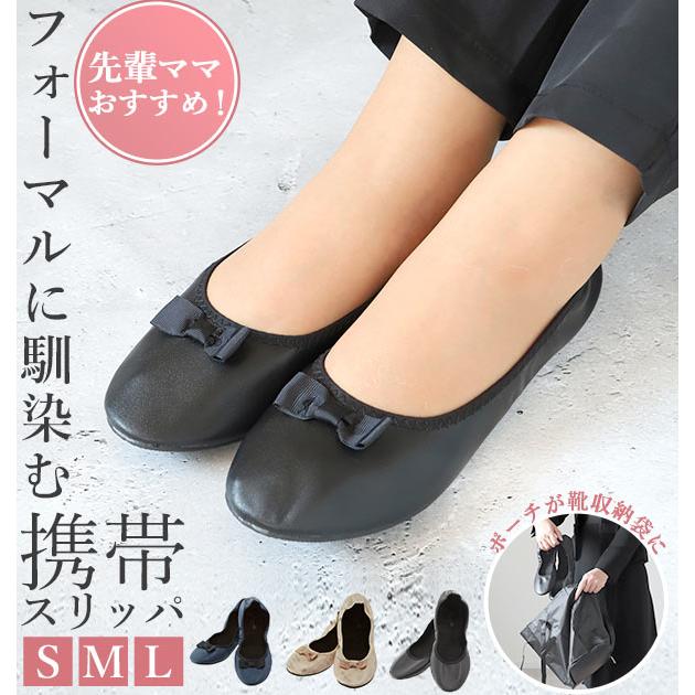 携帯スリッパ 折り畳みスリッパ レディース 室内履き おしゃれ 入園式 入学式 黒 Btj 302